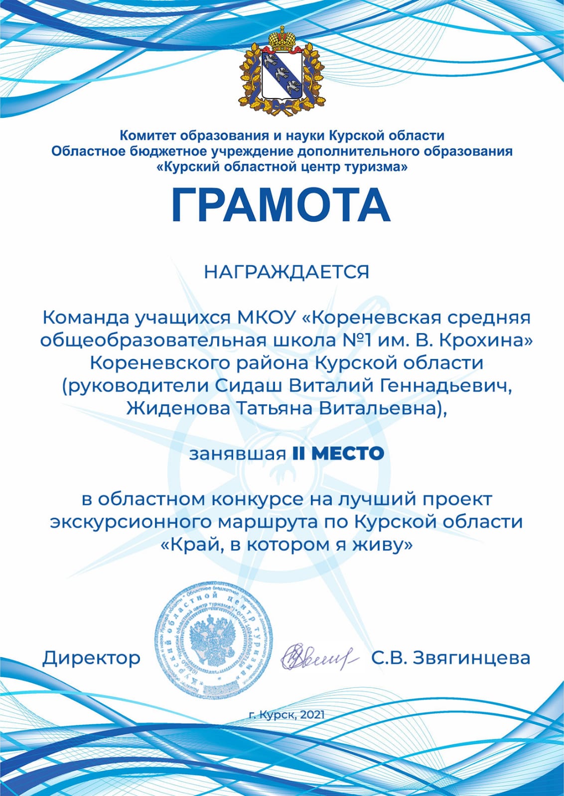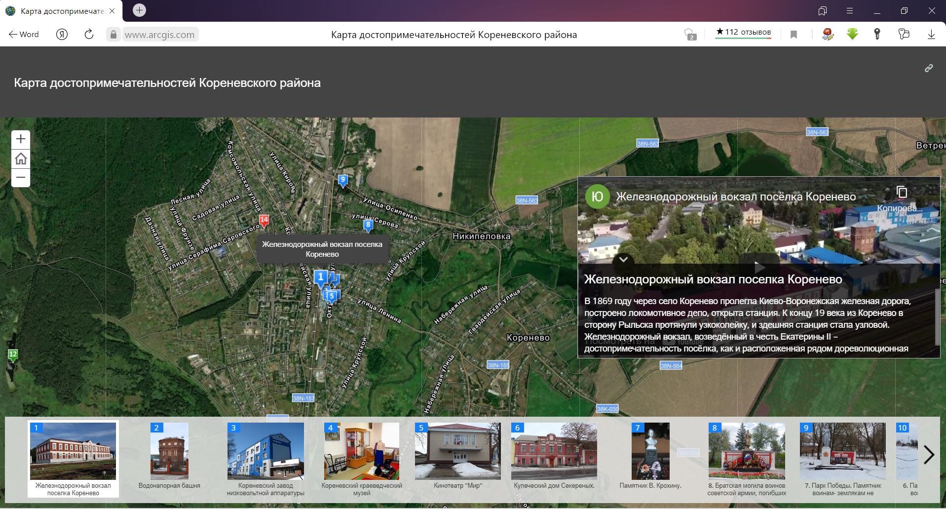 Родной край, малая родина — то место, где человек появился на свет, сделал первые шаги, сказал первые слова, увидел солнце, у каждого свое. Все мы родом из детства. Для ребенка поселок, город, край, где он живёт и растёт, — это та среда, которая способствует воспитанию гармоничной личности. Первым шагом к этому может стать краеведение — одно из самых важных средств духовно-нравственного воспитания подрастающего поколения. Главная задача краеведения – познакомиться с малой родиной, открыть новые страницы ее истории, культуры, природных богатств. В Кореневской СОШ №1 им. В.Крохина постоянно идет работа по изучению родного края на уроках истории, географии, краеведения, литературы, а также на занятиях внеурочной деятельности. Большое внимание на них уделяется исследовательской работе, направленной на изучение его традиций. Освоению обучающимися духовных и культурных ценностей малой родины, обеспечивающих развитие у детей гражданственности, патриотизма как важнейших духовно-нравственных и социальных ценностей способствует и участие в акциях, конкурсах различного уровня. В октябре 2021 года на конкурс «Край, в котором мы живем», организованный Курским областным центром туризма, был представлен совместный проект учеников, посещающих курсы внеурочной деятельности «Музейное дело» (руководитель Жиденова Т.В.) и «Геоинформационные технологии» (руководитель Сидаш В.Г.). |