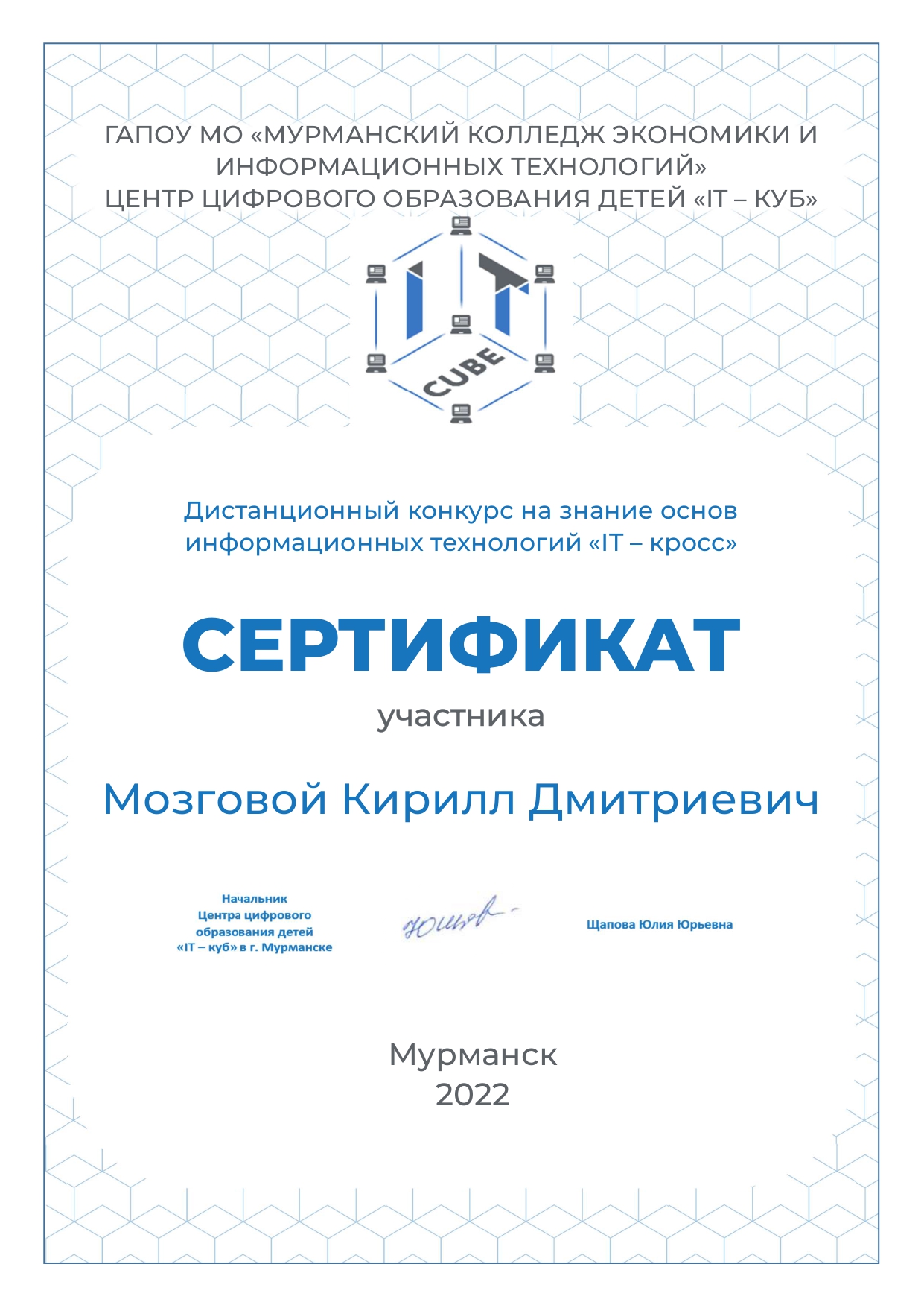 С 17 по 26 октября в IT-куб.Мурманск проводилась дистанционная олимпиада по информатике. Ребята, которые посещают занятия «Алгоритмика», а также все неравнодушные к этому предмету проверили свои знания выполняя задания. Ребята получили огромное удовольствие от участия. Все умники и умницы были награждены сертификатами участников. |
